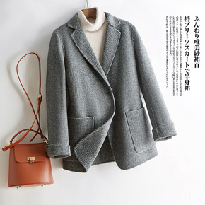 短款双面尼毛呢大衣 气质韩款百搭 手感顺滑口袋上衣...