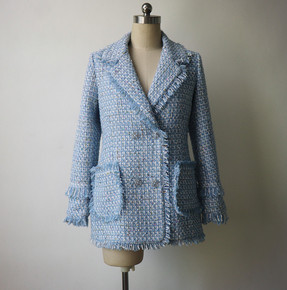 春秋冬女装名媛小香风西装领外套修身气质百搭上衣粗花...