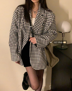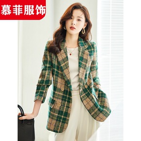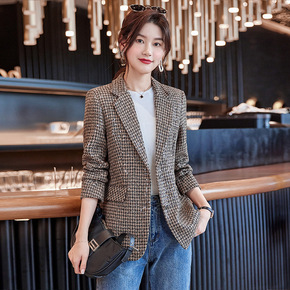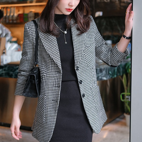 复古千鸟格西装外套女2022春秋季新款韩版中长款网...
