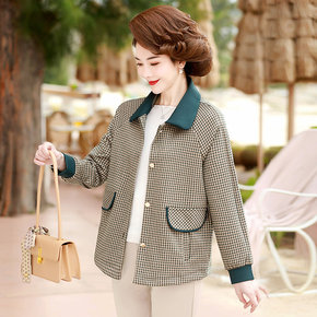 小香风妈妈春秋千鸟格短款外套中年女春装风衣中老年洋...