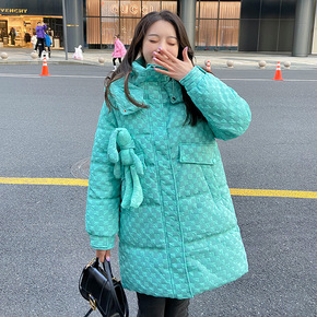 2021新款羽绒棉服女外穿千鸟格子棉衣中长款厚款冬...