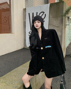 灯芯绒西装外套女秋冬加厚2022年新款西服黑色设计...