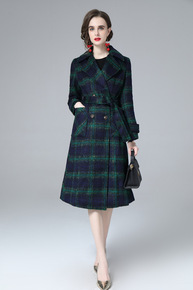 22早春新品复古名媛风混纺羊毛粗花呢翻领中长款外套...