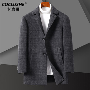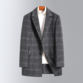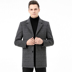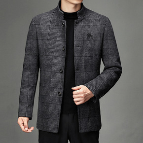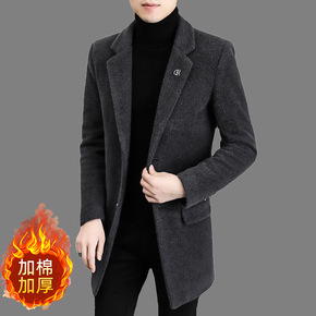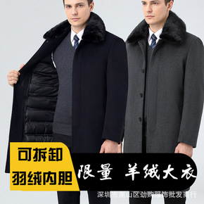 2021新款男士中长款中年羽绒内胆大衣羊毛双面呢子...