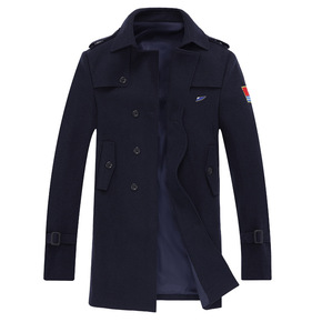 速卖通独立站wish跨境英伦男士中长款长袖呢大衣秋...