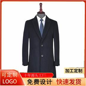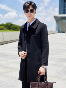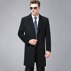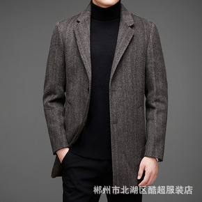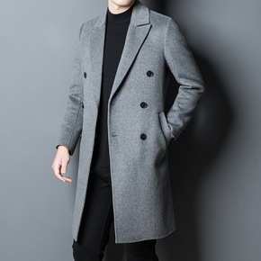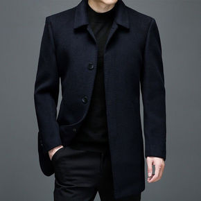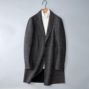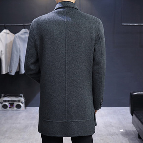 中长款商务绅士休闲单排扣羊毛直筒型男装双面呢翻领冬...