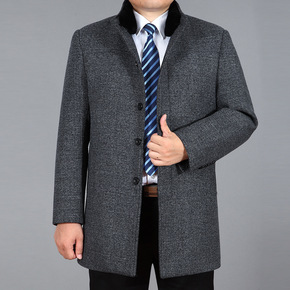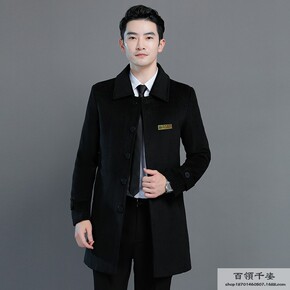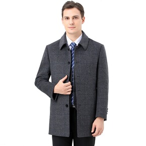 品牌男装呢子大衣男中年翻领中长款羊绒大衣中老年保暖...