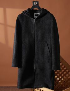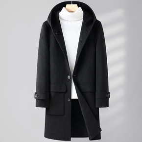 羊毛 外贸工厂尾单 男士连帽长款休闲呢子大衣 外...
