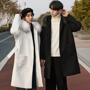 黑色呢子大衣女中长款2019秋冬新款韩版气质男女同...