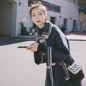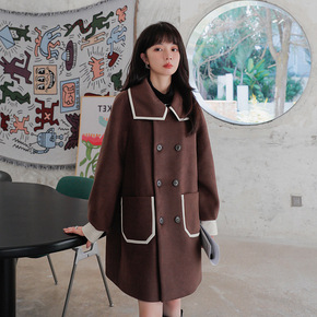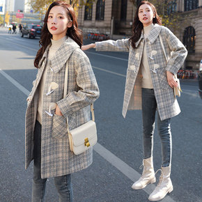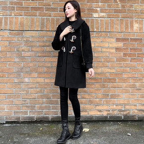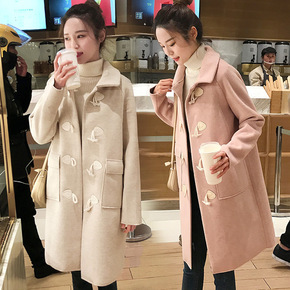 牛角扣休闲呢子大衣女中长款秋冬流行款韩版小个子学院...