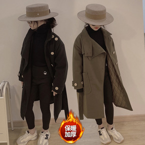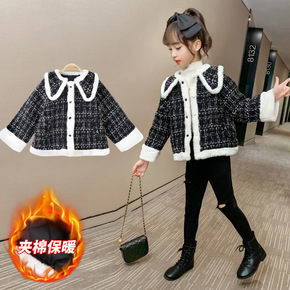 女童外套双排扣气质呢大衣夹棉加厚上衣22冬装新款外...