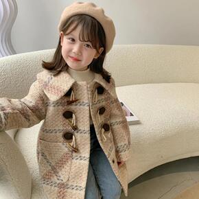女童格子呢大衣外套2022秋装中大童呢大衣童装一件...