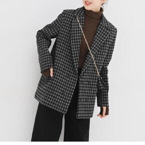 西装格子毛呢外套女秋冬2021年新款复古韩版小个子...