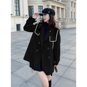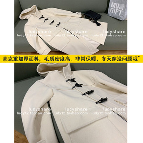 牛角扣呢子大衣女秋冬2021新款小个子中长款学院风...