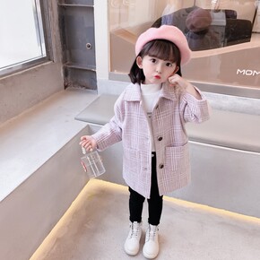 童装春装2021新款韩版外套女童呢子大衣女宝宝中长...