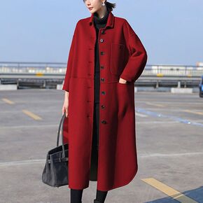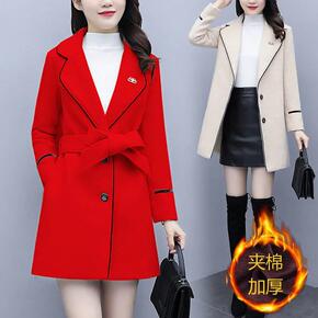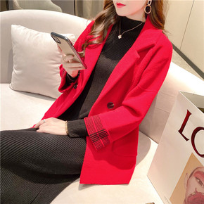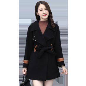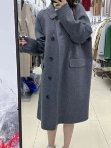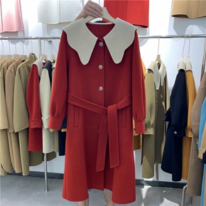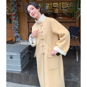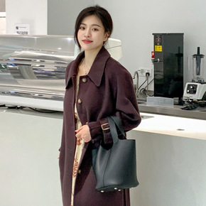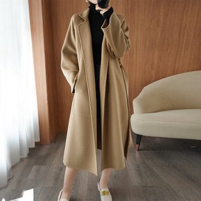 2021秋冬新款双面呢外套时尚宽松西装领中长款女式...