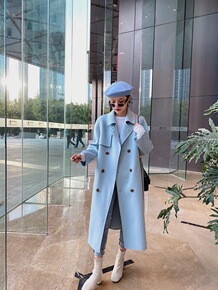 21秋冬新款欧美气质通勤单排扣显瘦双面呢大衣外套女...