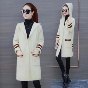 仿貂毛大衣2022秋冬中长款连帽针织开衫宽松型气质...