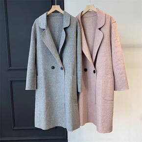 秋冬新款高端双面羊绒大衣女中长款西装领纯羊毛双面呢...