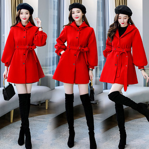 宽松洋气夹棉毛呢外套大码女装秋冬季新款胖女人收腰气...
