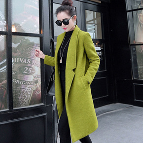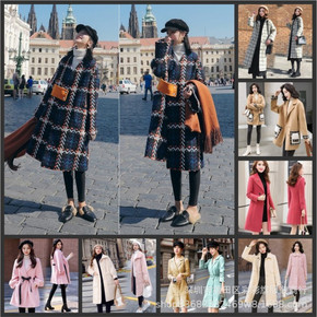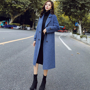 秋冬毛呢外套女中长款2019新款韩版潮雾霾蓝宽松显...