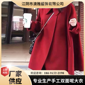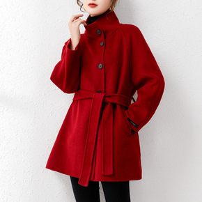 切糕家羊毛红色双面呢圣诞呢子大衣2021冬季新款长...