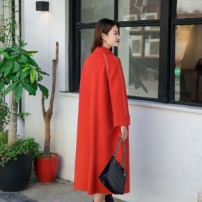 高档手工双面羊绒大衣女网红爆款长款过膝宽松羊毛呢外...