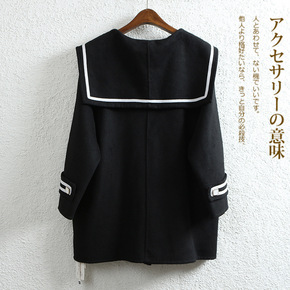 反季日系学院风海军领双面羊绒大衣女呢子黑色短款毛呢...
