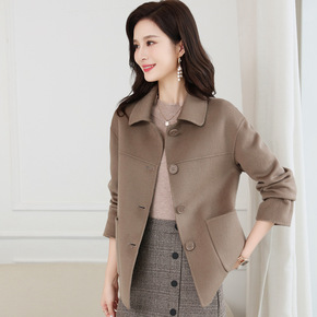 高端短款双面羊绒大衣女2021新款秋冬宽松黑色小个...