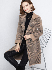 新款西装领双面羊绒大衣女中长款大码宽松毛呢外套人字...
