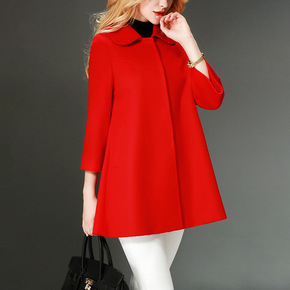 秋冬优质新款英伦风蝙蝠袖斗篷呢子大衣小个子毛呢外套...