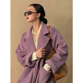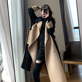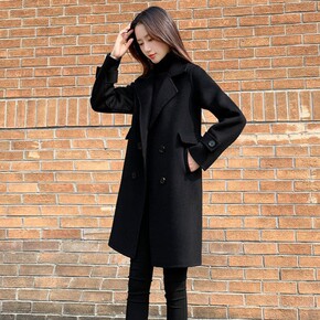 服饰(一件可拍)双面毛呢大衣中长款经典双排扣韩版毛...