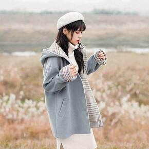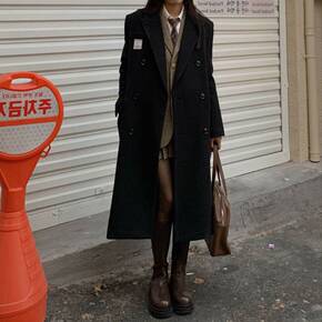 毛呢学生女 呢大衣毛42606长款2021款中秋冬...