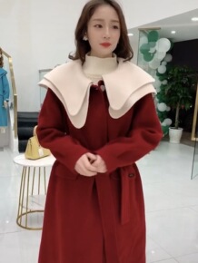 2020冬装新款过年红色大衣抖音蒲萄同款娃娃领毛呢...