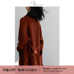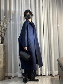 SASA高支羊毛翻领长款宽松金属标翻领长款双面呢大...