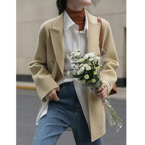 双面羊绒西装大衣女年春秋季新款小个子气质百搭毛呢外...