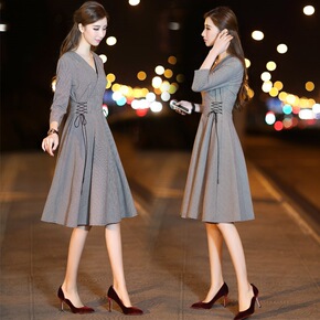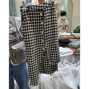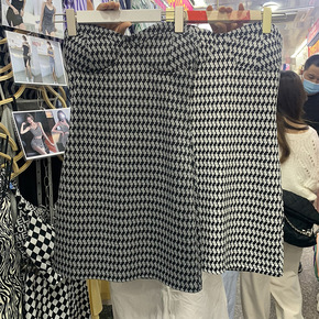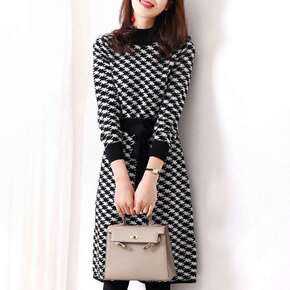 新款现货半精纺黑白千鸟格单面毛料春秋时装套装连衣裙...