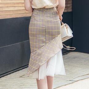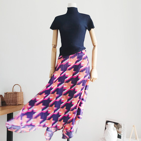 三宅褶皱不规则半身裙大千鸟格印花半身裙2021秋季...