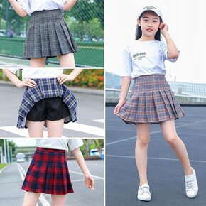 百搭女童百褶裙洋气中大童学院风儿童格子半身裙小学生...