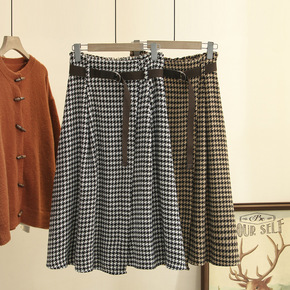 2021秋冬新款韩版200斤胖MM时尚百搭千鸟格半...