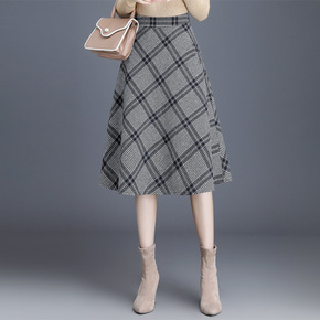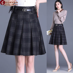 秋冬加厚呢子百褶裙女2021新款宽松A字中长裙高腰...