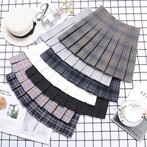 一件包邮2022春秋半身裙女粉格学院风格子高腰百褶...