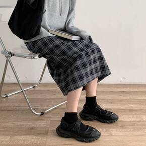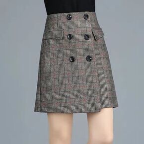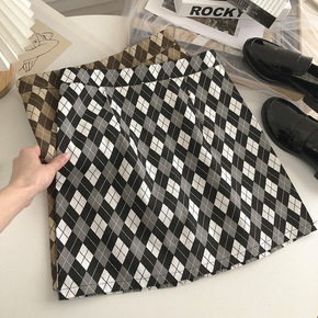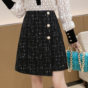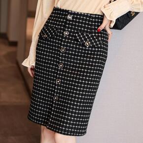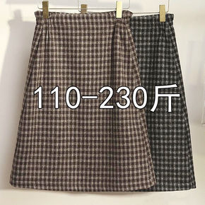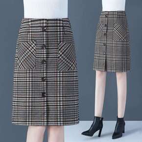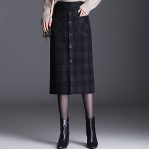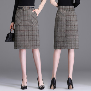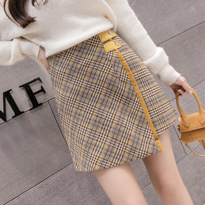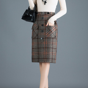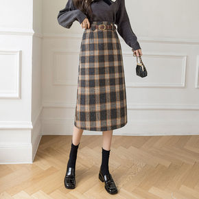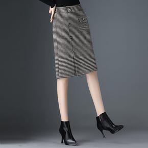 2021春秋款毛呢半身短裙女包臀裙一步裙格子半身裙...