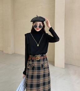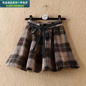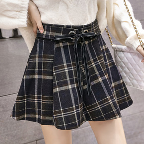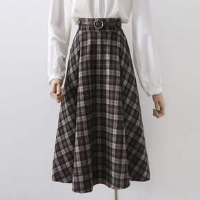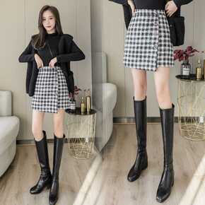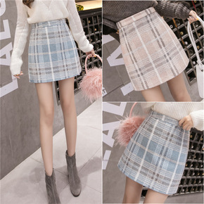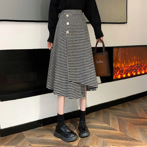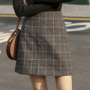女装毛呢半身裙2020秋冬新款韩版复古百搭格子高腰...