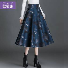 毛呢半身裙女2019秋冬新款大码高腰A字裙加厚大摆...