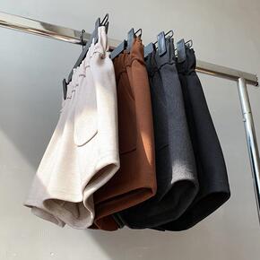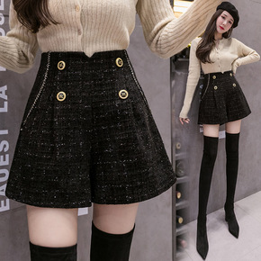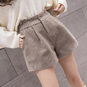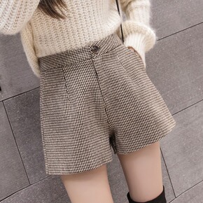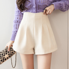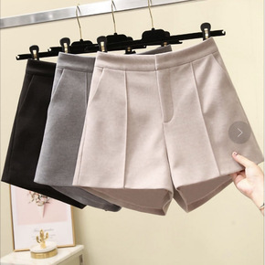 毛呢短裤女春秋款高腰外穿新款百搭加厚阔腿显瘦冬天靴...