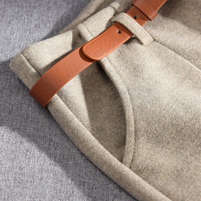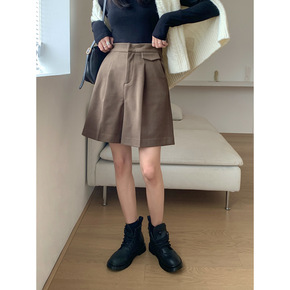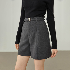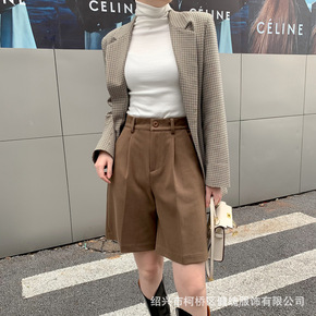 2021秋冬西装短裤斜纹肌理阔腿高腰加厚毛呢短裤外...