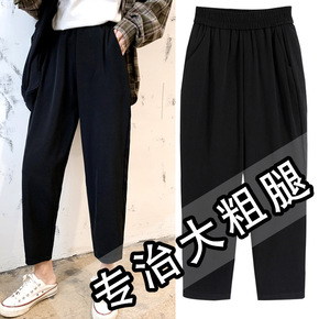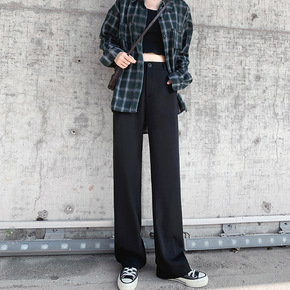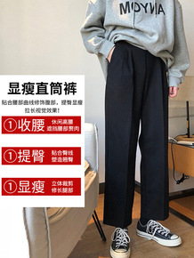 黑色阔腿裤子女高腰垂感春秋直筒九分裤胖mm宽松大码...