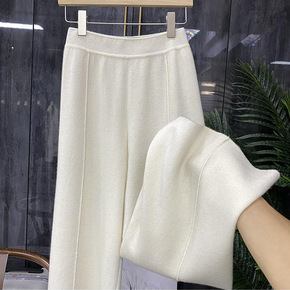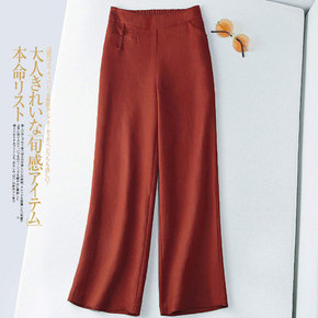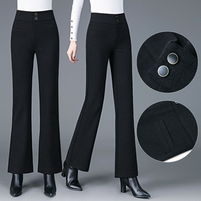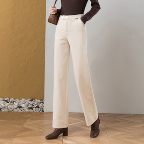 冬季阔腿裤女加厚都市休闲高腰毛呢肤色粘纤宽松型长裤...