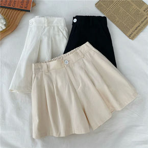 毛呢短裤女2021新款松紧腰宽松休闲A字裤高腰显瘦...